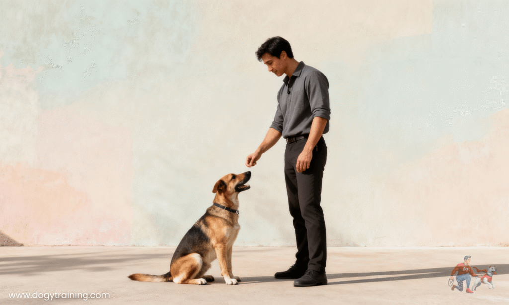 The moment your dog’s rear touches the ground, mark the behavior verbally with “Yes,” “Good,” or a clicker, then immediately reward with a treat or praise. Correct timing ensures your dog links the sit with the positive outcome.